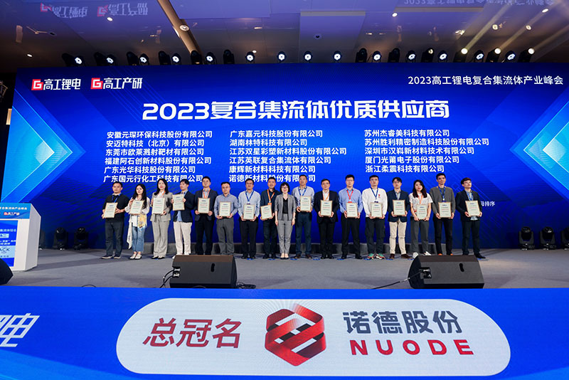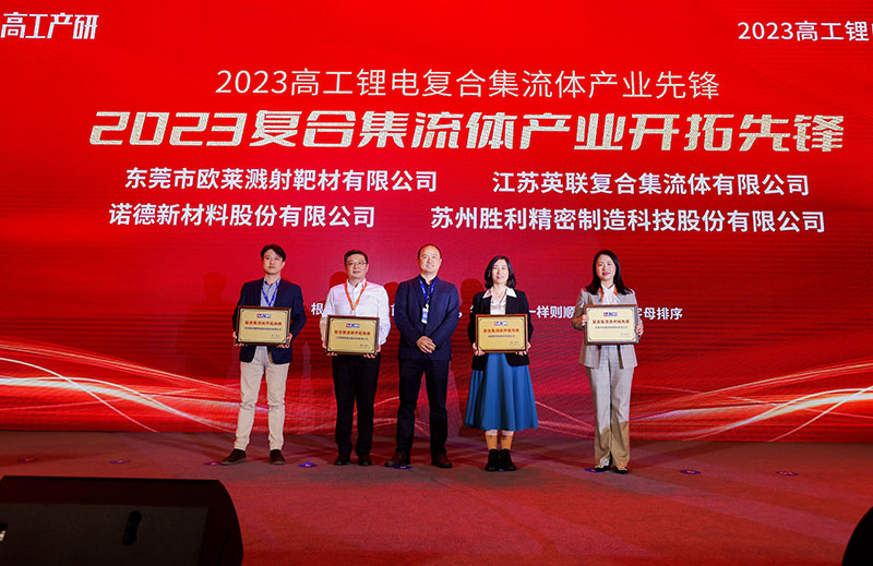 歐萊新材積極協(xié)同鍍膜設(shè)備制造商、鋰電池生產(chǎn)企業(yè),共同解決行業(yè)痛點(diǎn), 從而榮獲“復(fù)合集流體開拓先鋒獎”和“2023復(fù)合集流體優(yōu)質(zhì)供應(yīng)商獎”。